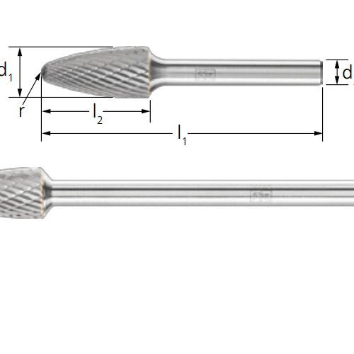 樹形毛刺,半徑端部符合DIN 8032,切割符合DIN 80003。