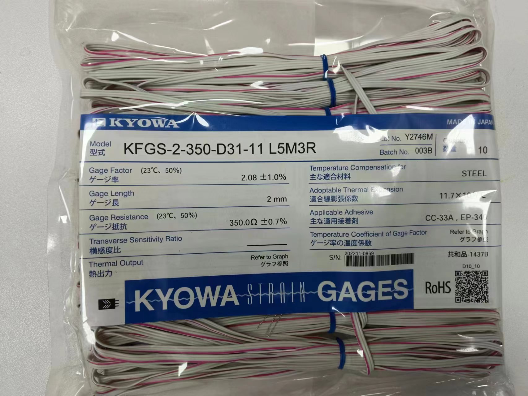 日本KYOWA共和應(yīng)變片帶雙線式中溫導線KFGS-10-120-D16-11 R15C2